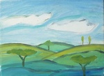 2005olieverf op doek, heuvels, bomen glooiend landschap