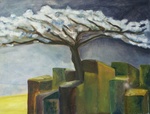 2007de wind stuurt de groei van de bomen.Olie op linnen
