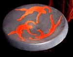 2007raku gestookt. Schaal kan functioneel gebruikt worden door de schaal uit de steun te nemen en horizontal op de voet te plaatsen.